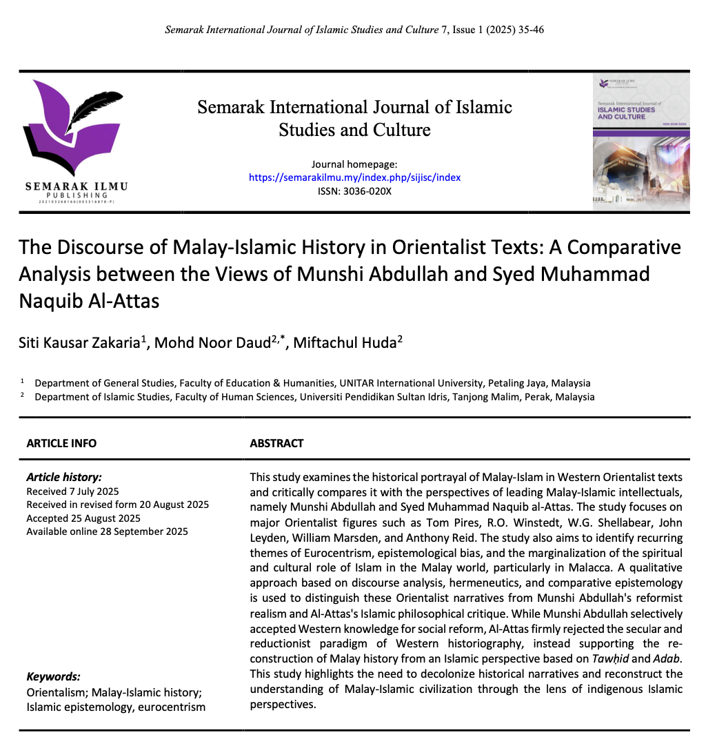 Semarak International Journal of Islamic Studies and Culture (SIJISC) is a peer-review international journal that publishes high quality papers and is a leading platform for introducing methods and techniques for research and data analysis in the field of Islamic studies and culture.