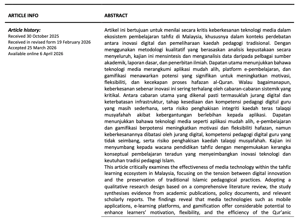 Semarak International Journal of Islamic Studies and Culture (SIJISC) is a peer-review international journal that publishes high quality papers and is a leading platform for introducing methods and techniques for research and data analysis in the field of Islamic studies and culture.